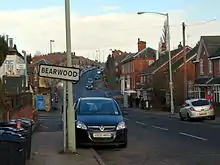 Bearwood is the southern part of Smethwick, Sandwell, West Midlands, England, and north of the A456 Hagley Road. Bearwood Hill was the original name of the High Street from Smethwick Council House to Windmill Lane. The border at the Shireland Brook where Portland Road (Edgbaston) becomes Shireland Road (Sandwell) is signed "Bearwood" (February 2014).