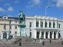 Smetana initially went to Gothenburg without Kateřina. Writing to Liszt, he said that the people there were musically unsophisticated, but he saw this as an opportunity "for an impact I could never have achieved in Prague."[40] Within a few weeks of his arrival, he had given his first recital, opened a music school that was rapidly overwhelmed by applications,[41] and become conductor of the Gothenburg Society for Classical Choral Music.[41] In a few months Smetana had achieved both professional and social recognition in the city, although he found little time for composition; two intended orchestral works, provisionally entitled Frithjof and The Viking's Voyage, were sketched but abandoned.[42]