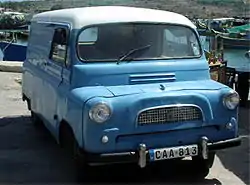 The engine extended back into the vehicle's passenger compartment, and was covered by a removable cowling. The vehicle thus had a very short bonnet, giving it its distinctive look. This configuration meant that the driver and passenger were travelling with their feet alongside the engine, but allowed a good proportion of the vehicle's overall length to be used for its payload. Access to the engine for routine checks was via the tiny bonnet flap, or through the interior cowl. For major overhaul of the engine, the front panel containing the headlights and grille, and the chassis front crossmember had to be completely removed.[2] A popular aftermarket conversion of the time was the use of the Perkins 4/99 diesel engine. This was low on power (40 bhp) but was capable of superior fuel economy.