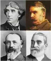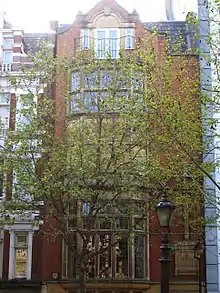 The Beefsteak became an essential after-theatre club for such men as the dramatists F. C. Burnand and W. S. Gilbert,[n 3] performers Corney Grain, J. L. Toole, John Hare, Henry Irving and W. H. Kendal, and theatre managers and writers Henry Labouchère and Bram Stoker,[n 4] and their peers.[36] Restaurant critic Nathaniel Newnham-Davis was also a member around the turn of the 20th century. The club moved to Green Street, in Mayfair,[35] and, in 1896, to its present address. There were 250 members,[37] some of whom occasionally performed amateur plays for their own amusement and to raise funds for charities. For example, in 1878, they performed The Forty Thieves, written by members Robert Reece, Gilbert, Burnand, and Henry J. Byron.[38] In 1879 there was a much-reported court case following a fracas on the doorstep of the club between Labouchère and Edward Levy-Lawson, proprietor of The Daily Telegraph. The committee of the club expelled Labouchère, who successfully sought a court ruling that they had no right to do so.[37]