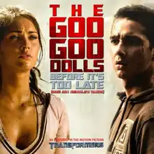 "Before It's Too Late (Sam and Mikaela's Theme)" or simply "Before It's Too Late" is a song from the Transformers soundtrack, Transformers: The Album, and the 25th single by the Goo Goo Dolls. It was released on June 5, 2007. The song itself was the first single to be released for the soundtrack reaching 86 on Billboard Hot 100 and 9 on Hot Adult Top 40, although the song, "What I've Done" by Linkin Park was written and used for most of the Transformers promotional purposes (possibly due to the lyrics of "What I've Done" better suiting the overall theme of the film). The song was later included on the band's second compilation album Greatest Hits Volume One: The Singles.