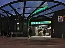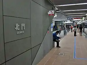 This four-level, underground station has two side platforms.[2] It is located beneath Tacheng St. beneath Civic Blvd. and Zhongxiao West Rd.[3] It was scheduled to open in December 2013 with the launch of the Songshan Line. However, the opening of Beimen station was delayed until 15 November 2014.[4]