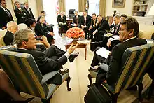 On August 29, 2019, former National Security Adviser John Bolton met with Lukashenko in Minsk to discuss improving relations between the two countries.[12] On 1 February 2020, U.S. Secretary of State Mike Pompeo visited Belarus for the first time in 26 years, to offer American aid after Russian decision to cut off energy supplies.[13] In July 2020, Deputy Minister of Foreign Affairs Oleg Kravchenko was appointed Belarusian Ambassador to the America.[14]