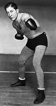 Jeby would become one of several Jewish title-holders of the time.[10][11][12][13] On March 20, 1931, weighing 157.5 pounds, he defeated Len Harvey on points over 12 rounds in a unanimous decision at Madison Square Garden in New York City. Jeby fought a rushing, mauling, body punching battle, at close range, for which Harvey had no answer. His attempts to clinch were inadequate to stop the onrush of Jeby.[14][15][16]