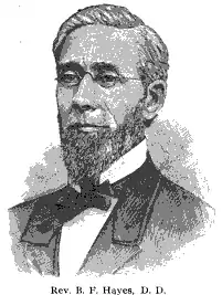 Benjamin Francis Hayes (1830-1906) was a Free Will Baptist pastor, author, principal of the Lapham Institute, and early professor at Bates College in Maine.[1]