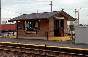 Berkeley is a Metra commuter railroad station in Berkeley, a western suburb of Chicago. It is served by the Union Pacific/West Line, and lies 14.3 miles (23.0 km) from the eastern terminus.[2] Trains go east to Ogilvie Transportation Center in Chicago and as far west as Elburn, Illinois. Travel time to Ogilvie is 29 to 36 minutes, depending on the service. As of 2018, Berkeley is the 173rd busiest of the 236 non-downtown stations in the Metra system, with an average of 145 weekday boardings.[1]