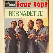 The song reached #4 on the Billboard Hot 100, and was The Four Tops's final Top 10 hit of the 1960s.[1] On the soul chart, "Bernadette" went to number three.[2] It also reached #8 in the UK on its first release and was a hit again in 1972, reaching #23.[3]