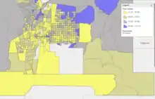As of the 2010 United States Census, there were 662,564 people, 266,000 households, and 164,104 families living in the county.[14] The population density was 570.8 inhabitants per square mile (220.4/km2). There were 284,234 housing units at an average density of 244.9 per square mile (94.6/km2).[15] The racial makeup of the county was 69.4% white, 4.8% American Indian, 3.0% black or African American, 2.3% Asian, 0.1% Pacific islander, 16.0% from other races, and 4.4% from two or more races. Those of Hispanic or Latino origin made up 47.9% of the population.[14] The largest ancestry groups were:[16]