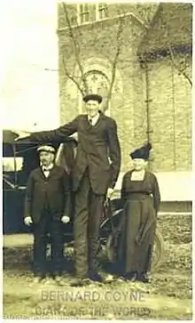 Bernard A. Coyne (July 27, 1897 – May 20, 1921)[1] is one of only 20 individuals in medical history to have stood 8 feet (240 cm) or more. Coyne may have reached a height of 8 feet 4 inches (2.54 m) tall at the time of his death in 1921. His World War I draft registration card, dated on August 29, 1918, lists his height as 8 feet (240 cm). The Guinness Book of World Records stated that he was refused induction into the Army (1918)[2] when he stood at a height of 7 feet 9 inches (236 cm).