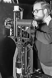 The BIBC chamber body was machined from a block of aluminium. It was filled with propane or freon. The chamber was designed to look for charmed particles, which are so un-stable that they usually decay too quickly to give big bubble chambers a good chance of catching them. In fact the track of a charmed particle could be lost amongst the 'large' (half a millimetre) bubbles of large chambers. The bubbles in the minichamber were about ten times smaller, and stood a better chance of picking up short tracks.[1] BIBC was used at the CERN SPS in the experiment NA18 as vertex detector together with a downstream 2 m streamer chamber of the MPI-Munich which allowed for momentum analysis of the charged particles.[2]