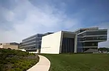 Designed by Chicago-based architectural firm Goettsch Partners, the music building is situated on the lakefront, connected to Regenstein Hall of Music. The Ryan Center houses teaching studios, faculty and administrative offices, 10 classrooms, 99 practice rooms, and three performance spaces: the Mary B. Galvin Recital Hall, the David and Carol McClintock Choral and Recital Room, and the Shirley Welsh Ryan Opera Theater. The design features a limestone base supporting a primarily glass exterior. The building takes full advantage of the site's lakefront location and views of the Chicago skyline, and integrates completely with the existing Regenstein Hall of Music, with two connections between the buildings on each of Regenstein's three levels.