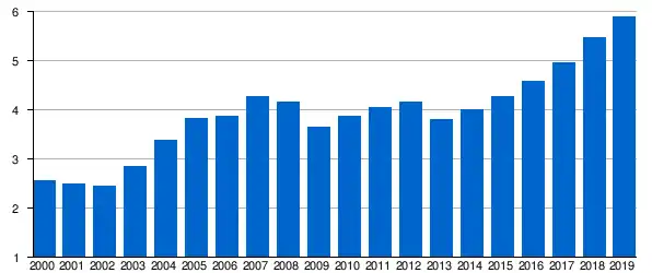 | 2005 | 3,843,953 | 56,285 | 3,956 | |||