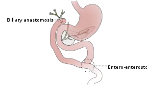 A surgically created passage between the common bile duct and the jejunum in a procedure called a choledochojejunostomy, can be carried out to relieve the symptoms of biliary obstruction.