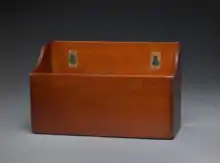 An original senate bill hopper dating from around 1817 is on display in the Old Senate Chamber, it is part of the collection of the Smithsonian Institution. The senate bill hopper had shelves as opposed to the 'bucket' shaped construction of the congressional hopper. The spaces between the shelves of the senate bill hopper shorten with height; it is believed that this is because so few bills became legally enacted.[1][4] A congressional bill hopper dating from the early 1950s is in the art collection of the House of Representatives; it was retired in 2004. It was situated next to the desk of the Clerk of the House of Representatives in the Chamber of the House of Representatives.[2]