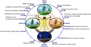 Increased and decreased sleep length appears to be a risk factor for depression.[18] People with MDD sometimes show diurnal and seasonal variation of symptom severity, even in non-seasonal depression. Diurnal mood improvement was associated with activity of dorsal neural networks. Increased mean core temperature was also observed. One hypothesis proposed that depression was a result of a phase shift.[19]