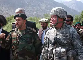 Bismillah Khan Mohammadi (Persian: بسمالله خان محمدی; born 1961 in Panjshir Province), or Bismillah Khan, is the former Defense Minister of Afghanistan. From 2002 to 2010, he served as Chief of Staff of the Afghan National Army and from 2010 to 2012 he held the post of Interior Minister of Afghanistan. He has an anti-Taliban background and once served as a senior commander under Ahmad Shah Massoud.