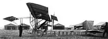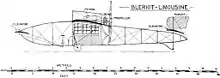In late 1911 Blériot produced an aircraft of similar configuration which had been built to the order of Henri Deutsch de la Meurthe, the Blériot XXIV "Limousine" (also referred to as the Bleriot Aeronef and the Bleriot Berline), and it is probable that the Type XIII was intended as a developmental aircraft for this machine. This aircraft featured an enclosed cabin with mica windows for the passengers, built by the Rothchild coachbuilding company, with the pilot sitting in front of it, his only protection being a small conical windshield attached to the front outrigger cross-bracing wires. A speaking tube was provided to allow the passengers to communicate with the pilot.[2] It differed considerably from the Type XIII in its constructional details. The wings had elliptical ends, similar to those of the Blériot XI and used wing warping for lateral control. They were conventionally braced using wires, those above the wing being connected to a cabane made up of a pair of inverted V-struts with a longitudinal tube connecting the apexes: under this was a large teardrop shaped fuel tank. The tail surfaces were mounted of four wire-braced booms, and the front elevator on four curved booms attached to the front of the cabin. It was initially powered by a 100 hp (75 kW) Gnome 14 Omega-Omega, which was later replaced by a 140 hp (100 kW) Gnome 14 Gamma-Gamma. It was 14 m (46 ft) long with a wingspan of 13 m (43 ft) and, with fuel but without passengers, weighed 700 kg (1,540 lb).[2]