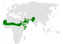 The black-crowned sparrow-lark occurs across North Africa, from the Cape Verde archipelago east through the Sahel of northern Africa, through the Arabian Peninsula and into Pakistan and India.[5]