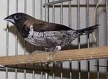 The black-faced munia (Lonchura molucca) is a species of estrildid finch found in Indonesia. It occurs in a wide range of habitats including artificial landscapes (e.g. parks and gardens), forest, grassland and savannah. It was first described by the Swedish naturalist Carl Linnaeus in the twelfth edition of his Systema Naturae in 1766. The IUCN has evaluated the status of this bird as being of least concern.