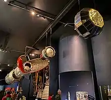 The final Black Arrow to be completed was R4, which did not fly, and is preserved in the Science Museum, London, along with the flight spare for the Prospero satellite.[23] A replica of the Black Arrow rocket stands in the Rocket Park at Woomera. In addition, the remains of the first stage of Black Arrow R3 were recovered from the Anna Creek cattle station and were displayed in the William Creek Memorial Park.[24] They have now been returned to the United Kingdom, and are due to be displayed in Penicuik, Scotland, by the end of March 2019.[25]