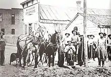 Civil War veteran William Edward Wheeler, from Vermont, was an early settler. On July 1, 1880, Wheeler began publishing a newspaper called the Blackfoot Register.[15] The first issue described the businesses in operation in Blackfoot on the publication date: “four general merchandise stores, one jewelry store, a livery stable, four saloons, a hotel, one meat market, two blacksmith shops, one barber shop and one lumber yard.”[16] Henry W. Curtis opened the first hardware store in 1885.[17]