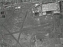 The Ministry of Aircraft Production erected a shadow aircraft factory during 1939-1940 in the north-east corner of the airfield to enable Vickers-Armstrong to operate an aircraft production facility at Squires Gate. This produced 2,584 Wellington medium bombers, several hundred of which were assembled and flown from Stanley Park Aerodrome before landing at Squires Gate for testing and delivery. The first was completed in September 1940 and the last in October 1945, when the factory closed.[14]