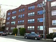 The Blackstone Apartments are located at 222 Summit Ave East in the Capitol Hill neighborhood of Seattle, Washington, United States. The apartment complex was designed and owned by J.S. Long and built by the Long Building Company in 1927.[1] The Long Building Company was known for designing and building many of the Bungalow-style homes, particularly in the First Hill neighborhood of Seattle under the guidance of Stanley Long.[2] The building consists of 26 units with a mixture of 2-, 3-, 4-, and 6-room suites; it has a brick exterior with a great deal of mahogany woodwork in the interiors and built-ins throughout the units, and was originally fitted with Monarch electric stoves and Frigidaires.[3] The complex was "regarded as one of the most modern units of its kind in the city" when it was completed.[4]