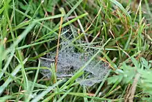 | Web of Florinda coccinea, showing stopping threads above and sheet below. | |