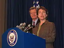 In 1998, Lincoln returned to politics and ran for the Senate seat being vacated by incumbent Senator Dale Bumpers.[20] She defeated her Republican opponent, Fay Boozman, a state senator and the brother of future U.S. Representative John Boozman, 55 percent to 42 percent).[21][22][23]
