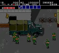 The game uses a side-view[1] and employs a multi-directional attack method similar to many other arcade games of the run and gun genre, including Guerilla War, Ikari Warriors, Mercs and Data East's own Heavy Barrel.