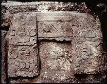 The discovery of a cache (Hoard) vessel inside a small temple as a part of the 1998 field season at Blue Creek, reveals much about the importance of cosmology in Maya religion and creation theory.[16] The Tonina shrine, located inside structure 3, consists of mountain and hearthstone depictions, which are thought to be direct references to concepts surrounding creation as a valued cultural belief.[16] The relationship between the Temple itself and the mountain pictured is believed to be symbolic of Sacred Maya landscapes.[16] The limestone boulder found in structure 3, suggests that this was also a valuable resource kept at Blue Creek.[16]