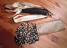 Blue corn (also known as Hopi maize, Yoeme Blue, Tarahumara Maiz Azul, and Rio Grande Blue) is several closely related varieties of flint corn grown in Mexico, the Southwestern United States, and the Southeastern United States.[1][2][3] It is one of the main types of corn used for the traditional Southern and Central Mexican food known as tlacoyo.