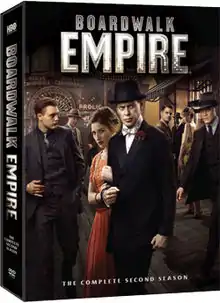 The second season of the HBO television series Boardwalk Empire premiered on September 25, 2011 and concluded on December 11, 2011, consisting of 12 episodes. The series was created by Terence Winter and based on the book Boardwalk Empire: The Birth, High Times and Corruption of Atlantic City by Nelson Johnson. Set in Atlantic City, New Jersey, during the Prohibition era, the series stars Steve Buscemi as Enoch "Nucky" Thompson (based on the historical Enoch L. Johnson),[1] a political figure who rose to prominence and controlled Atlantic City, New Jersey, during the Prohibition period of the 1920s and 1930s. The second season takes place between February and August 1921. The second season was released on DVD and Blu-ray in region 1 on August 28, 2012.[2]