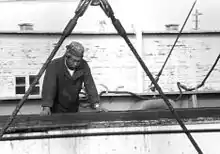 ![]() The boatswain aboard a US merchant ship stands cargo watch as freight is lowered into an open hatch, c.1981 | |