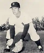 Houk took over from Stengel as the Yankee manager in 1961; he inserted Richardson either first or second into the batting order each game.[1] On June 15, he had three hits and four RBI, including a three-run home run against Johnny Antonelli as the Yankees beat the Cleveland Indians 11–5.[39] He had four RBI again in the second game of a doubleheader on July 9, including a three-run home run against Don Schwall, but the Yankees lost that game 9–6 to the Boston Red Sox.[40] On August 17, he had three hits and scored three runs in a 5–3 victory over the Chicago White Sox.[41] The Yankees lost 6–4 to the Los Angeles Angels on August 26, but Richardson had five hits in the game.[42] Playing all 162 games for the Yankees, Richardson batted .261 with 80 runs scored, 17 doubles, five triples, three home runs, and 49 RBI.[14] His 662 at bats were third in the AL (behind Brooks Robinson's 668 and Jake Wood's 663), and his 173 hits were fifth in the league.[43] Defensively, he led the AL with 413 putouts and 136 double plays assisted in.[1] Richardson finished 24th in MVP voting and won the Gold Glove at second base, the first of five straight he would win at the position.[14]