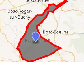 A farming village situated in the Pays de Bray, some 16 miles (26 km) northeast of Rouen at the junction of the D61 and the D96 roads.