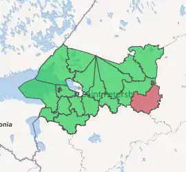 Boksitogorsky District (Russian: Бокситого́рский райо́н) is an administrative[1] and municipal[7] district (raion), one of the seventeen in Leningrad Oblast, Russia. It is located in the southeast of the oblast and borders with Tikhvinsky District in the north and west, Babayevsky District of Vologda Oblast in the east, Chagodoshchensky District of Vologda Oblast in the southeast, Khvoyninsky District of Novgorod Oblast in the south, and with Lyubytinsky District of Novgorod Oblast in the southwest. The area of the district is 7,200 square kilometers (2,800 sq mi).[3] Its administrative center is the town of Boksitogorsk.[1] Population (excluding the administrative center): 15,695 (2010 Census);[4] 17,698 (2002 Census);[9] 49,452 (1989 Census).[10][11]