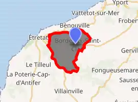 Bordeaux-Saint-Clair is a farming village situated in the Pays de Caux, some 15 miles (24 km) northeast of Le Havre, served by the D940 road between Fécamp and Etretat. The village is around 200 km away from Paris.[2]