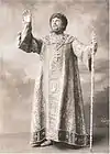 The Rimsky-Korsakov edition of 1908 premiered on 19 May 1908 at the Paris Opéra. The Cell Scene preceded the Coronation Scene, the Inn Scene and the Scene in Marina's Boudoir were omitted, the Fountain Scene preceded the Terem Scene, and the Kromï Scene preceded the Death Scene. Production personnel included Sergey Dyagilev (producer), Aleksandr Sanin (stage director), Aleksandr Golovin, Konstantin Yuon, Aleksandr Benua, and Yevgeniy Lansere (scene designers), Ulrikh Avranek (chorusmaster), and Ivan Bilibin (costume designer). Feliks Blumenfeld conducted. The cast included Fyodor Shalyapin (Boris), Klavdiya Tugarinova (Fyodor), Dagmara Renina (Kseniya), Yelizaveta Petrenko (Nurse), Ivan Alchevsky (Shuysky), Nikolay Kedrov (Shchelkalov), Vladimir Kastorsky (Pimen), Dmitri Smirnov (Pretender), Nataliya Yermolenko-Yuzhina (Marina), Vasiliy Sharonov (Varlaam), Vasiliy Doverin-Kravchenko (Misail), Mitrofan Chuprïnnikov (Yuródivïy), and Khristofor Tolkachev (Nikitich).[40] The production ran for 7 performances.[46]