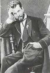 In the autumn of 1868, Vladimir Nikolsky, a professor of Russian history and language, and an authority on Pushkin, suggested to Mussorgsky the idea of composing an opera on the subject of Pushkin's "dramatic chronicle" Boris Godunov.[8] Boris the play, modelled on Shakespeare's histories,[9] was written in 1825 and published in 1831, but was not approved for performance by the state censors until 1866, almost 30 years after the author's death. Production was permitted on condition that certain scenes were cut.[10][11] Although enthusiasm for the work was high, Mussorgsky faced a seemingly insurmountable obstacle to his plans in that an Imperial ukaz of 1837 forbade the portrayal in opera of Russian Tsars (amended in 1872 to include only Romanov Tsars).[12]