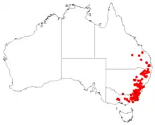 It occurs in Victoria, New South Wales and Queensland in Australia.