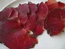 Brési or Braisi is beef which has been salted, dried and smoked, which is made in the canton of Jura and in Jura bernois in Switzerland and in the department of Doubs in France. It resembles Grisons Buendnerfleisch. Brési is most commonly served thinly sliced at the start of main meals, or else as a side dish with fondues.