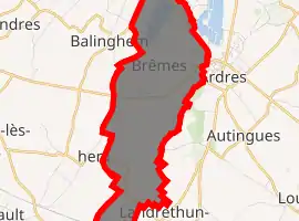 A village situated 10 miles (16 km) south of Calais, on the D213 road. Surrounded by water, including the lake of Brêmes.