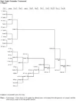 A bracket or tournament bracket is a tree diagram that represents the series of games played during a knockout tournament. Different knockout tournament formats have different brackets; the simplest and most common is that of the single-elimination tournament. The name "bracket" is American English, derived from the resemblance of the links in the tree diagram to the bracket punctuation symbol ] or [ (called a "square bracket" in British English). The closest British term is draw, although this implies an element of chance, whereas some brackets are determined entirely by seeding.
