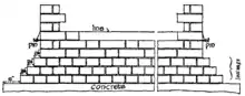 A bricklayer, which is related to but different from a mason, is a craftsman and tradesman who lays bricks to construct brickwork. The terms also refer to personnel who use blocks to construct blockwork walls and other forms of masonry.[1] In British and Australian English, a bricklayer is colloquially known as a "brickie".[2] A stone mason is one who lays any combination of stones, cinder blocks, and bricks in construction of building walls and other works. The main difference between a bricklayer and a true mason is skill level: bricklaying is a part of masonry and considered to be a "lower" form of masonry, whereas stonemasonry is a specialist occupation involved in the cutting and shaping of stones and stonework.[3]