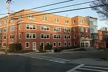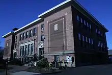 - Hunt Hall (1936, 25,500 square feet (2,370 m2)), formerly the Dr. Albert F. Hunt Junior High School, is on School St. It houses the parking clerk and student ID services in the basement and classrooms on the upper floors.