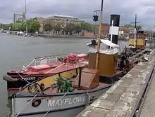 Normally moored in front of the developing new museum is the collection of historic vessels, which included the 1934 fireboat "Pyronaut" and two tugs: John King built as a diesel tug in 1935 and Mayflower, the world's oldest surviving steam tug built in 1861.[1][2]