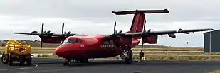 BAS operates five aircraft in support of its research programme in Antarctica. The aircraft used are all made by de Havilland Canada and comprise four Twin Otters and one Dash 7 (as of August 2019).[27] The planes are maintained by Rocky Mountain Aircraft in Springbank, Alberta, Canada. During the Antarctic summer the aircraft are based at the Rothera base, which has a 900-metre gravel runway. During the Antarctic winter, conditions preclude flying and the aircraft return to Canada.[28]
