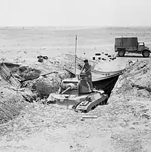 Although infantry units each had an anti-tank platoon, divisions also had a Royal Artillery anti-tank regiment. This had four batteries, each of twelve guns. At the start of the war, they were equipped with the 2-pounder. Although this was perhaps the most effective weapon of its type at the time, it soon became obsolete as tanks became heavier with thicker armour.[56] Its replacement, the 6-pounder, nevertheless did not enter service until early 1942. Even before the 6-pounder was introduced, it was felt that even heavier weapons would be needed, so the 17-pounder was designed, first seeing service in the North African Campaign in late 1942.[57]