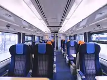 The refurbishment included making the first-class accommodation area larger and completely refitting it, brighter interior lighting with new diffusers and the plating-over of the disused toilet in the MSO vehicle. The Class 159/1s have been fitted with retention toilets. Additional alterations include the installation of a Passenger information system (PIS) and CCTV as is fitted on the 159/0s.[17]